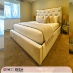 In addition to its breathtaking design, the Golden Pyramid Bed offers the convenience of optional Ottoman storage. This practical feature provides ample space beneath the mattress platform, hidden away neatly to keep your bedroom tidy and clutter-free. It’s an ideal solution for storing bedding, seasonal clothing, or personal items, ensuring that elegance and functionality go hand in hand.