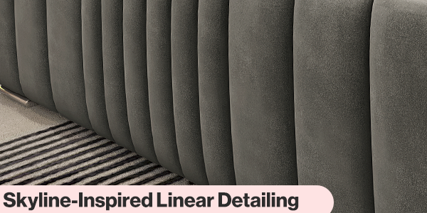 The vertical lines adorning the headboard and frame mimic the towering skyscrapers of the Manhattan skyline, delivering a modern, urban aesthetic that transforms your bedroom into a stylish sanctuary.