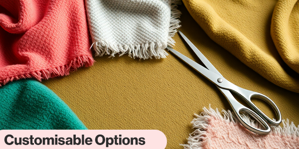 - Plush Fabrics: Grey, Silver, Cream, Steel, Green, Beige, Mustard, Pink, Turquoise.
