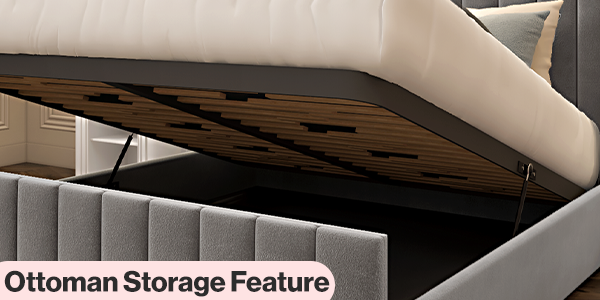 Functionality meets elegance with the gas-lift ottoman storage base. Effortlessly lift the mattress to reveal a spacious storage area, perfect for bedding, seasonal clothing, or bedroom essentials, keeping your space organised and clutter-free.