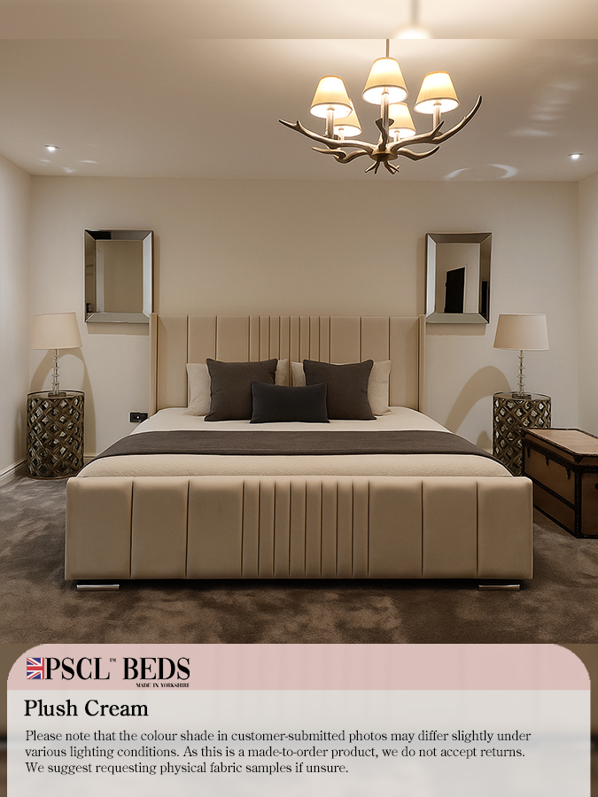 - Crushed Velvet Fabrics: Silver, Cream, Black, Mink.
